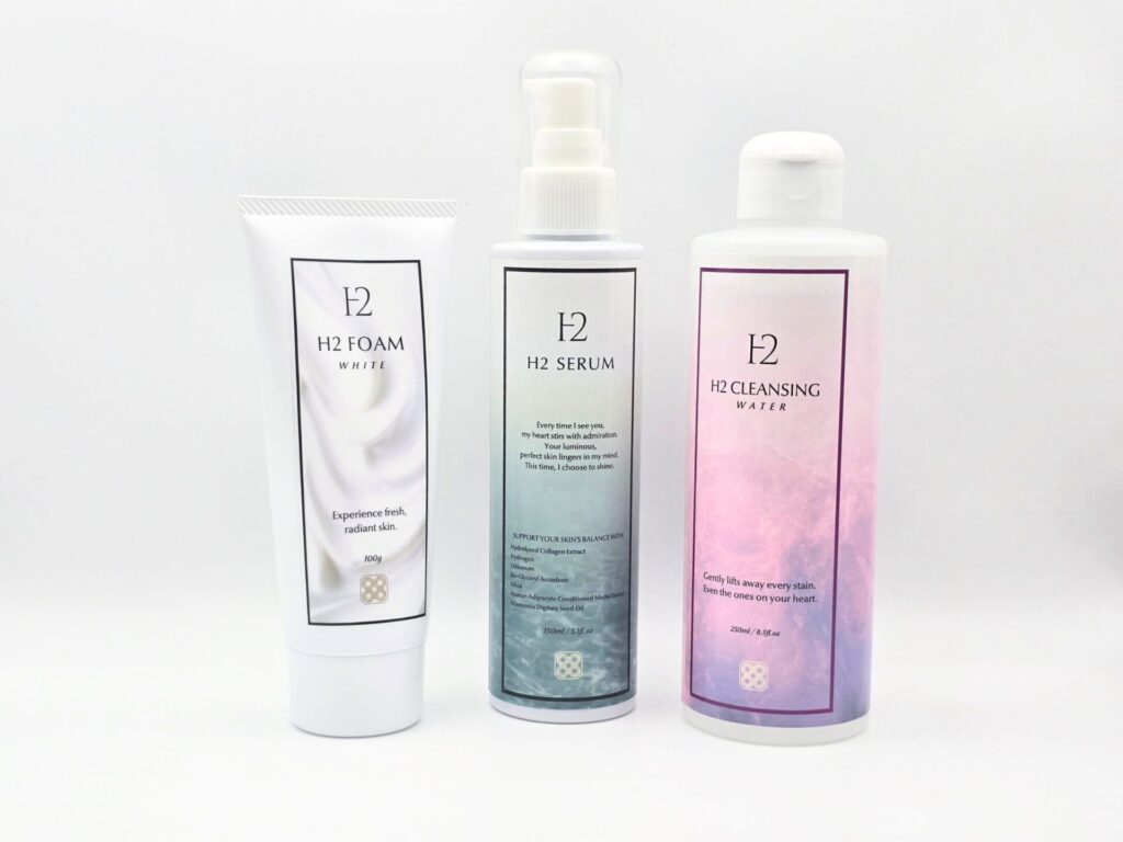 それぞれのアイテムには水素が配合されており、トータルで肌をケアします。